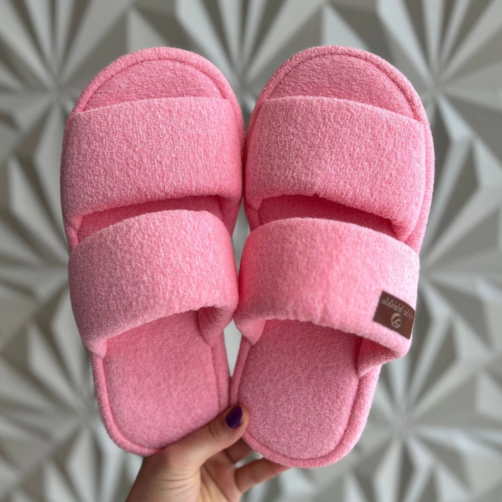 Chinelo de quarto em fleece peluciado com solado elevado de 2cm com borracha